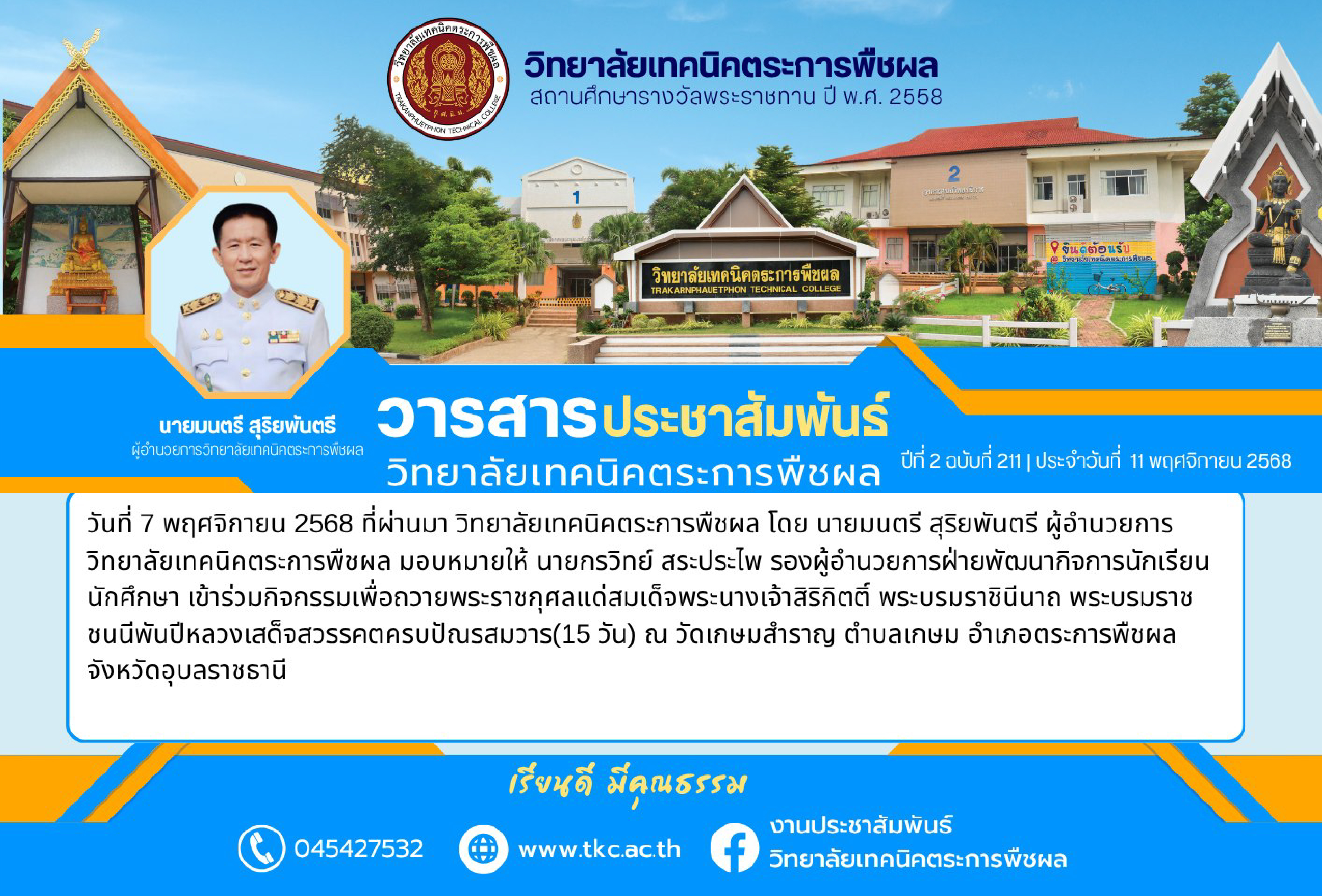 วารสารประชาสัมพันธ์ ปีที่ 2 ฉบับที่ 211 วันที่ 11 พฤศจิกายน 2568