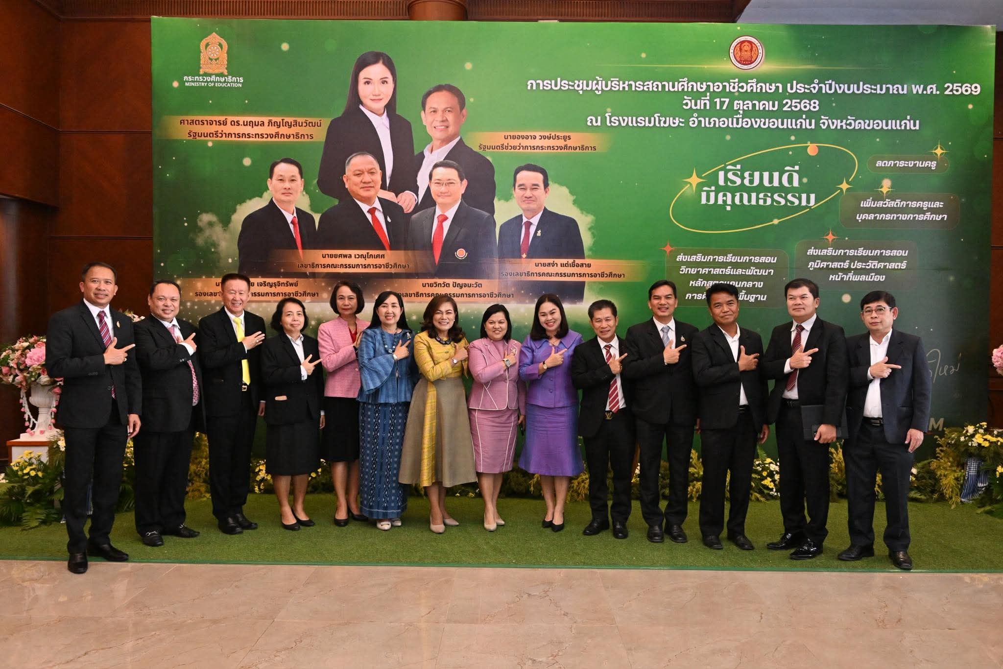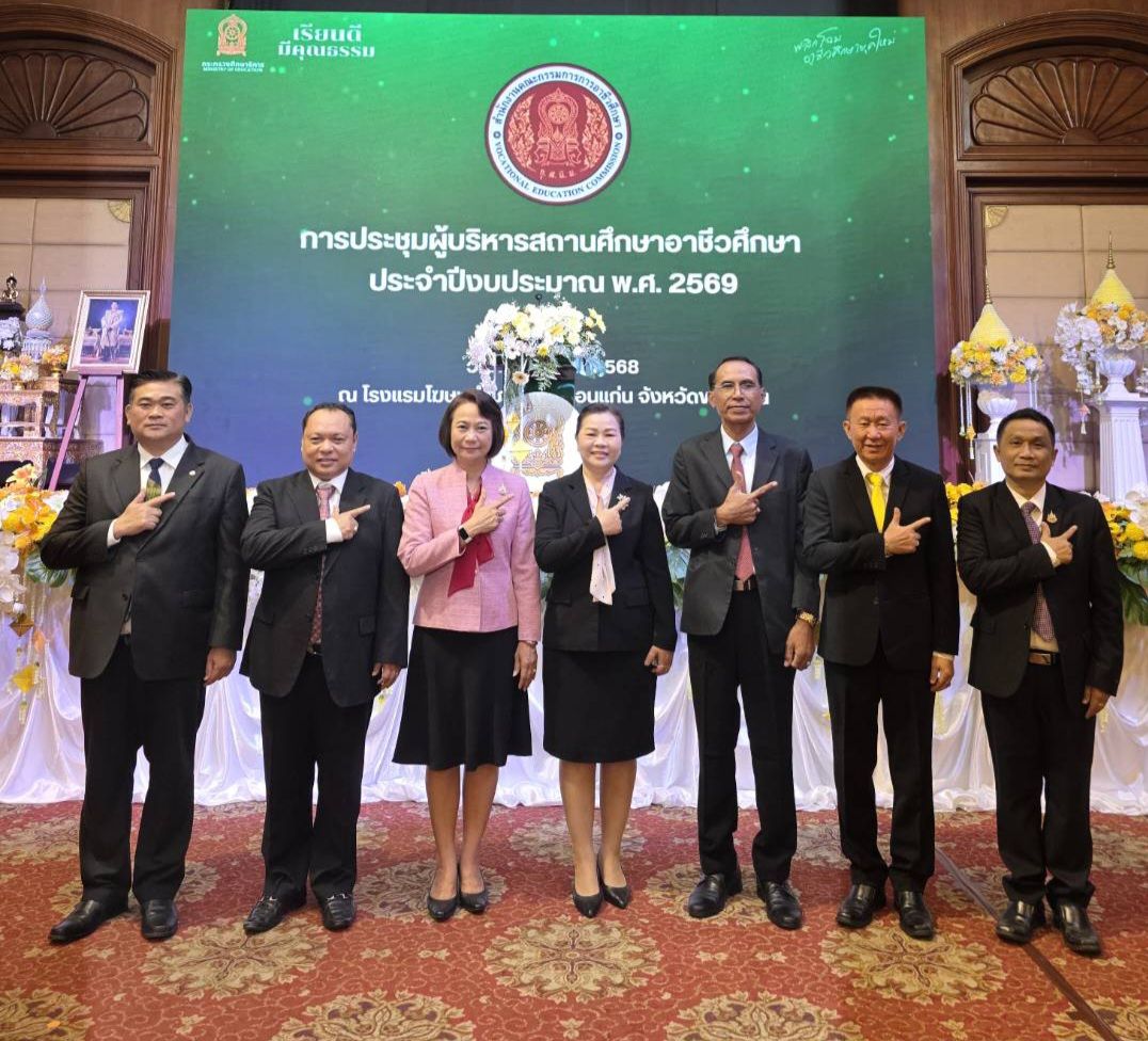 วันที่ 17 ตุลาคม 2568 วิทยาลัยเทคนิคตระการพืชผล โดย นายมนตรี สุริยพันตรี ผู้อำนวยการวิทยาลัยเทคนิคตระการพืชผล เข้าร่วมการประชุมผู้บริหารสถานศึกษาอาชีวศึกษา ประจำปีงบประมาณ พ.ศ. 2569 ณ ห้องมงกุฎเพชรแกรนด์บอลรูม ชั้น 2 โรงแรมโฆษะ อำเภอเมือง จังหวัดขอนแก่น