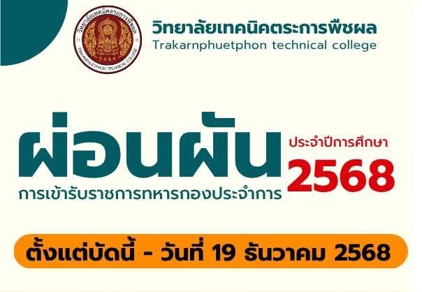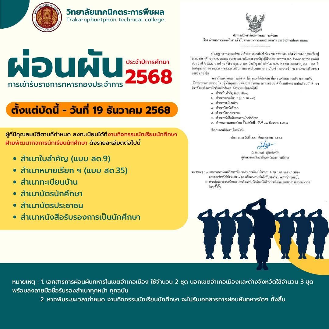 ประกาศกำหนดการผ่อนผันการเข้ารับราชการทหารกองประจำการ ประจำปีการศึกษา 2568