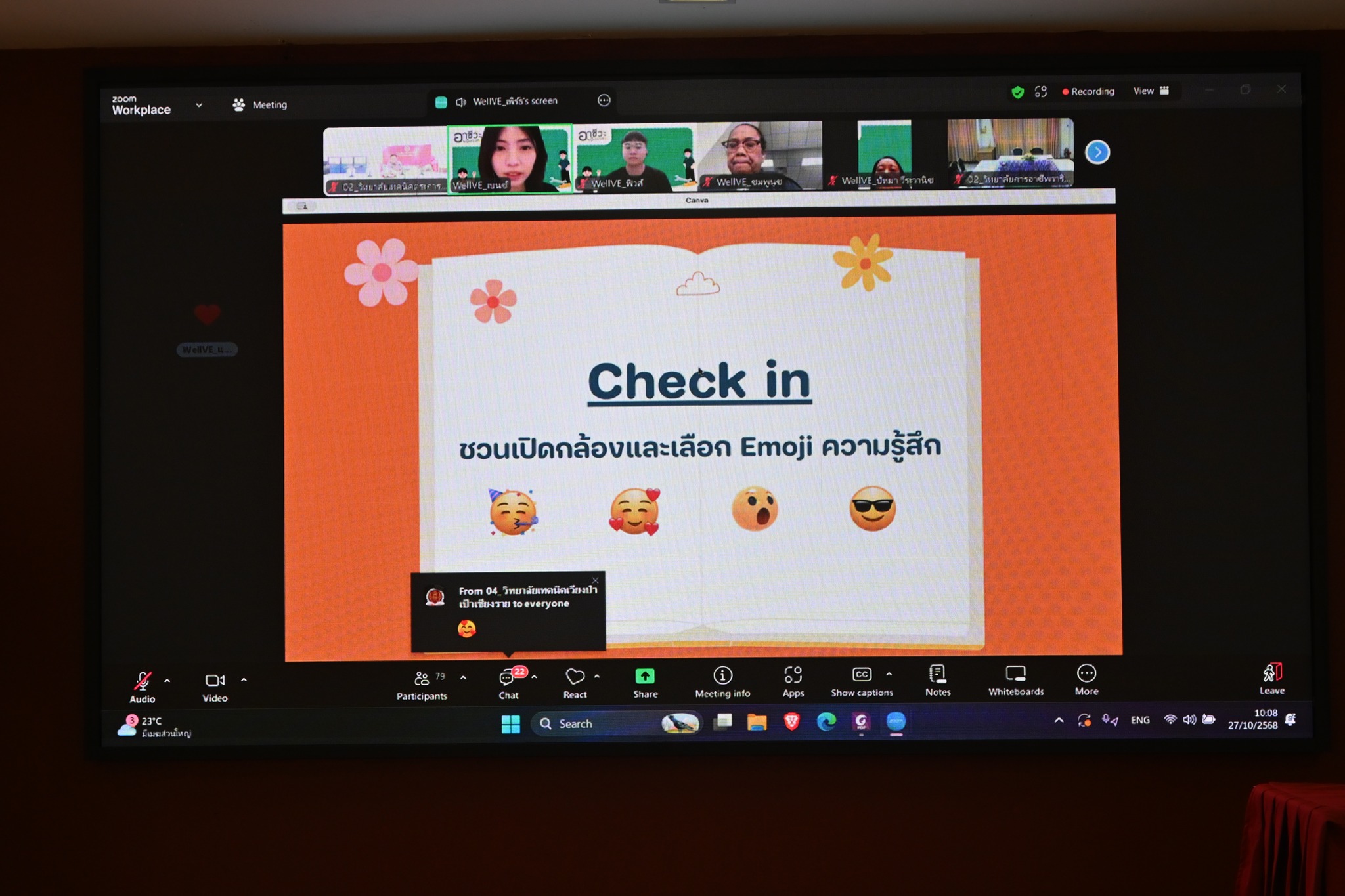 วันที่ 27 ตุลาคม พ.ศ. 2568 วิทยาลัยเทคนิคตระการพืชผล โดย นายมนตรี สุริยพันตรี ผู้อำนวยการวิทยาลัยเทคนิคตระการพืชผล พร้อมคณะผู้บริหาร เข้าร่วมประชุมชี้แจงโครงการนำร่องเสริมสร้างสุขภาวะและลดปัจจัยเสี่ยงในสถาบันอาชีวศึกษาด้วยกระบวนการส่งเสริมพฤติกรรมเชิงบวกผ่าน 4 + 6 โมเดล ผ่านช่องทางออนไลน์ (zoom meeting)