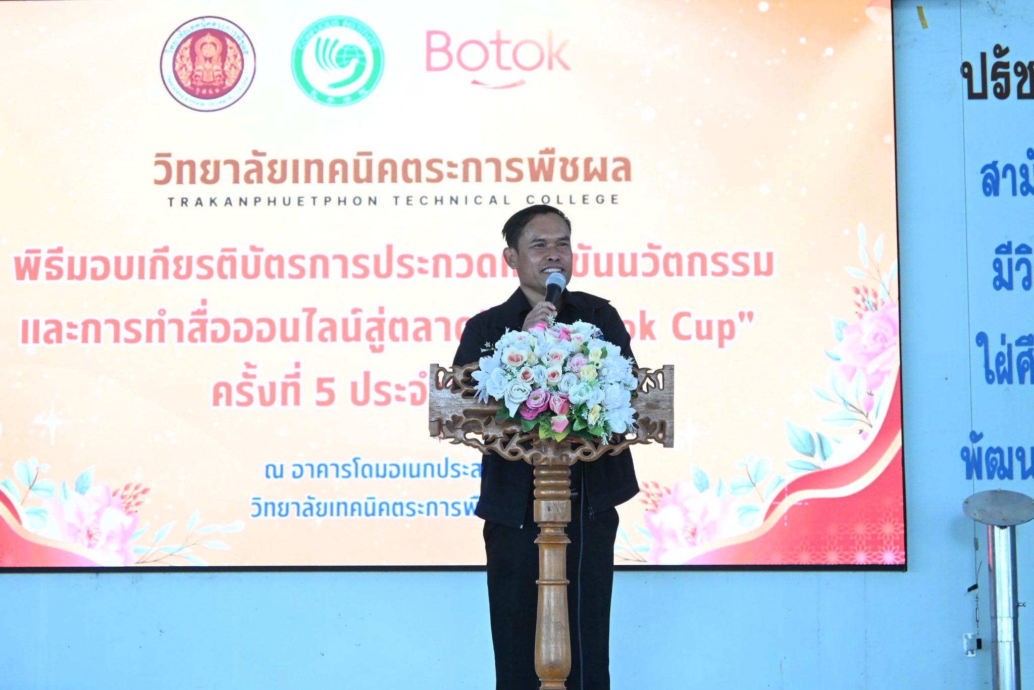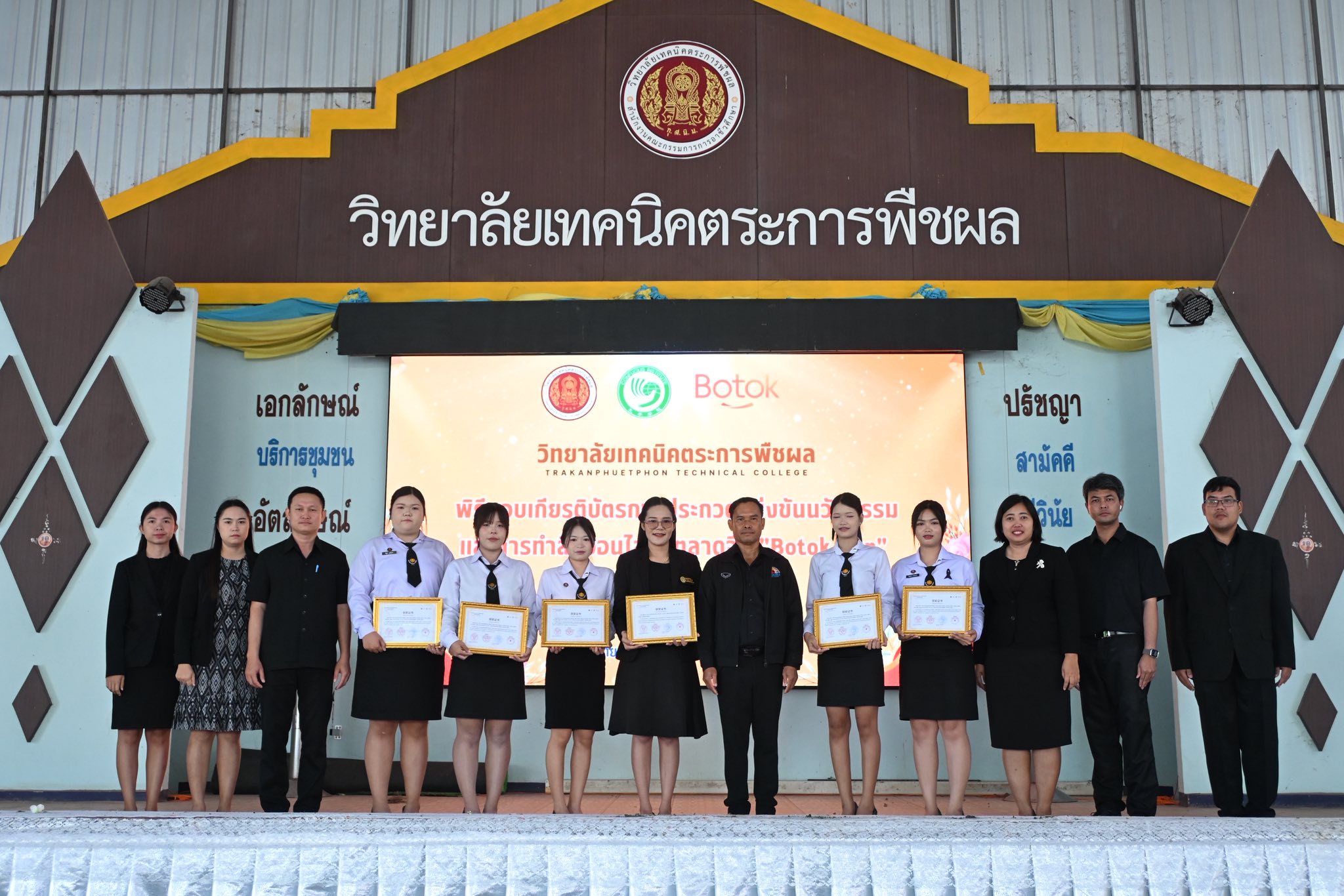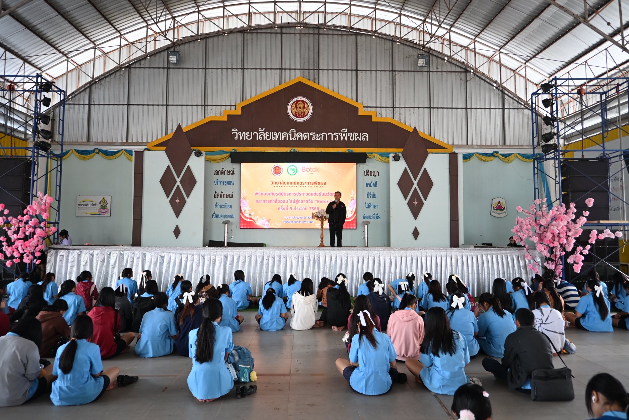 วันที่ 28 ตุลาคม พ.ศ. 2568 วิทยาลัยเทคนิคตระการพืชผล โดย นายมนตรี สุริยพันตรี ผู้อำนวยการวิทยาลัยเทคนิคตระการพืชผล มอบหมายให้นายสมศักดิ์ ไพคำนาม รองผู้อำนวยการ คณะครู บุคลากรทางการศึกษา และนักเรียน นักศึกษา เข้าร่วมพิธีมอบเกียรติบัตรการประกวดแข่งขันนวัตกรรมและการทำสื่อออนไลน์สู่ตลาดจีน “Botok Cup” ครั้งที่ 5 ประจำปี 2568 ณ อาคารโดมอเนกประสงค์ วิทยาลัยเทคนิคตระการพืชผล