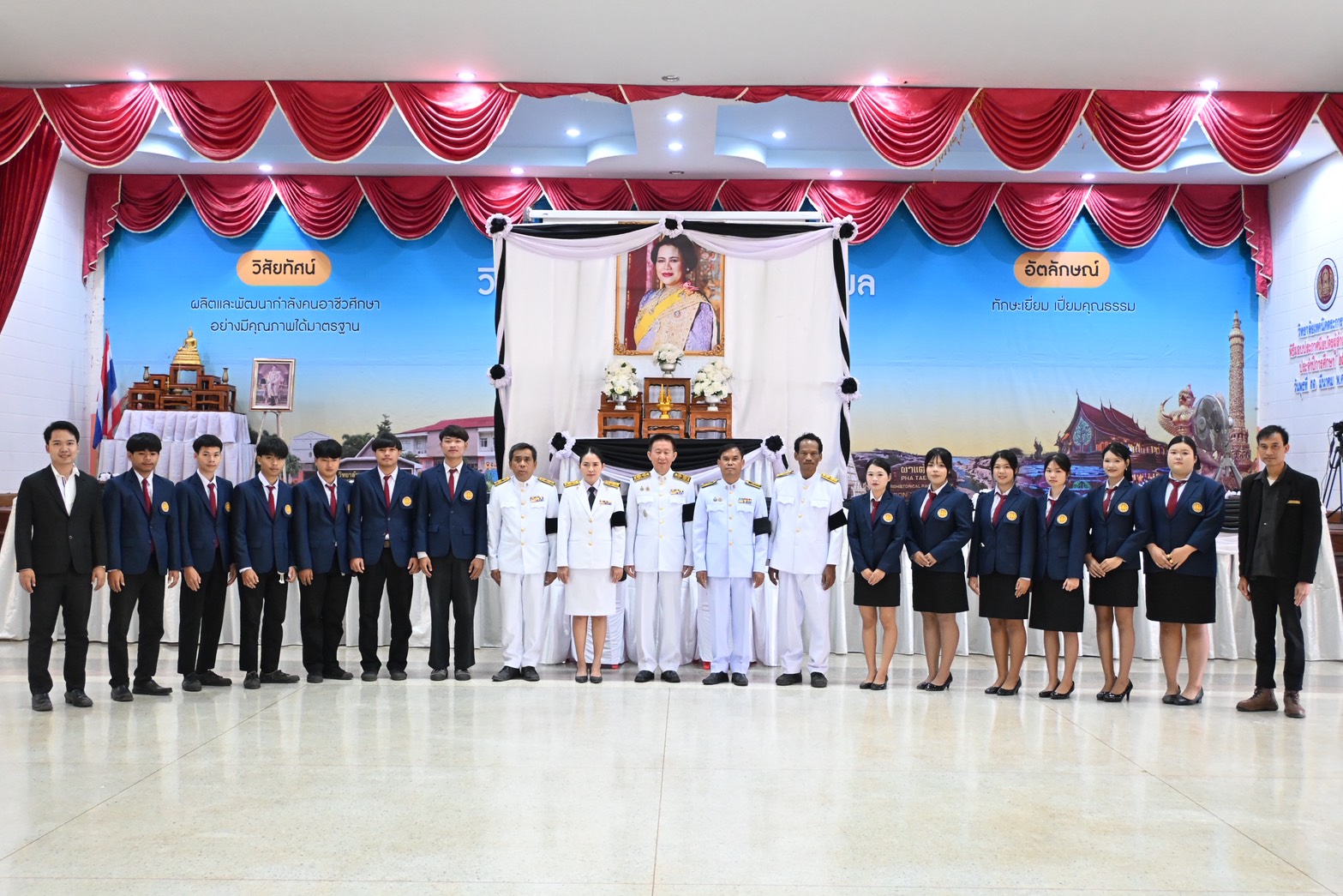 วันพุธที่ 29 ตุลาคม 2568 วิทยาลัยเทคนิคตระการพืชผล โดย นายมนตรี สุริยพันตรี ผู้อำนวยการวิทยาลัยเทคนิคตระการพืชผล พร้อมด้วย คณะผู้บริหาร ครู บุคลากรทางการศึกษา และนักเรียน นักศึกษา วิทยาลัยเทคนิคตระการพืชผล ร่วมแสดงความอาลัยและถวายพระเกียรติแด่ สมเด็จพระนางเจ้าสิริกิติ์ พระบรมราชินีนาถ พระบรมราชชนนีพันปีหลวง น้อมรำลึกในพระมหากรุณาธิคุณอันหาที่สุดมิได้ ต่อพระราชจริยวัตรอันงดงาม และพระเมตตาธิคุณที่ทรงมีต่อพสกนิกรชาวไทยเสมอมา โดยพร้อมใจกันก้มกราบถวายความอาลัย และยืนสงบนิ่ง เป็นเวลา 93 วินาที ณ วิทยาลัยเทคนิคตระการพืชผล