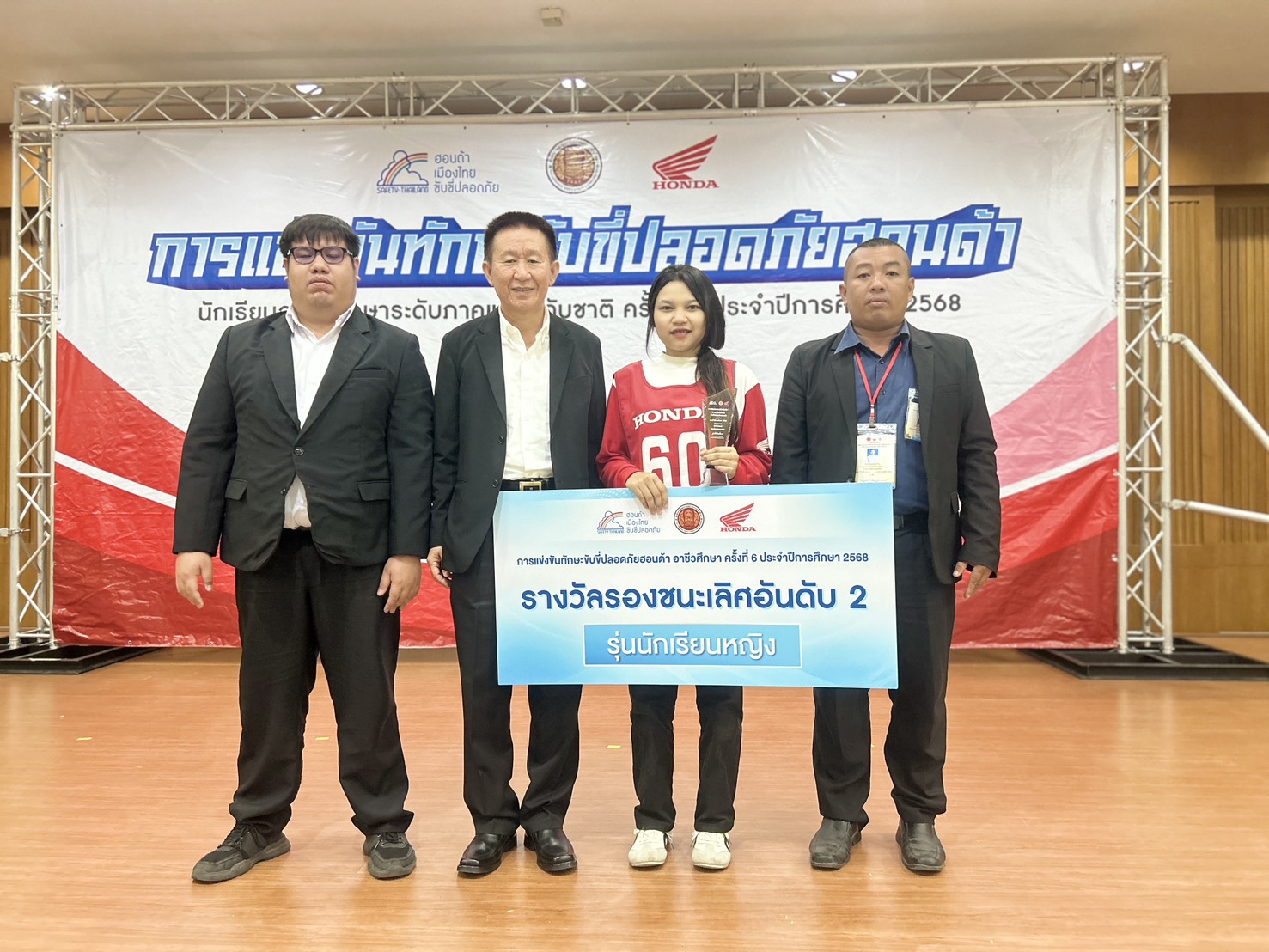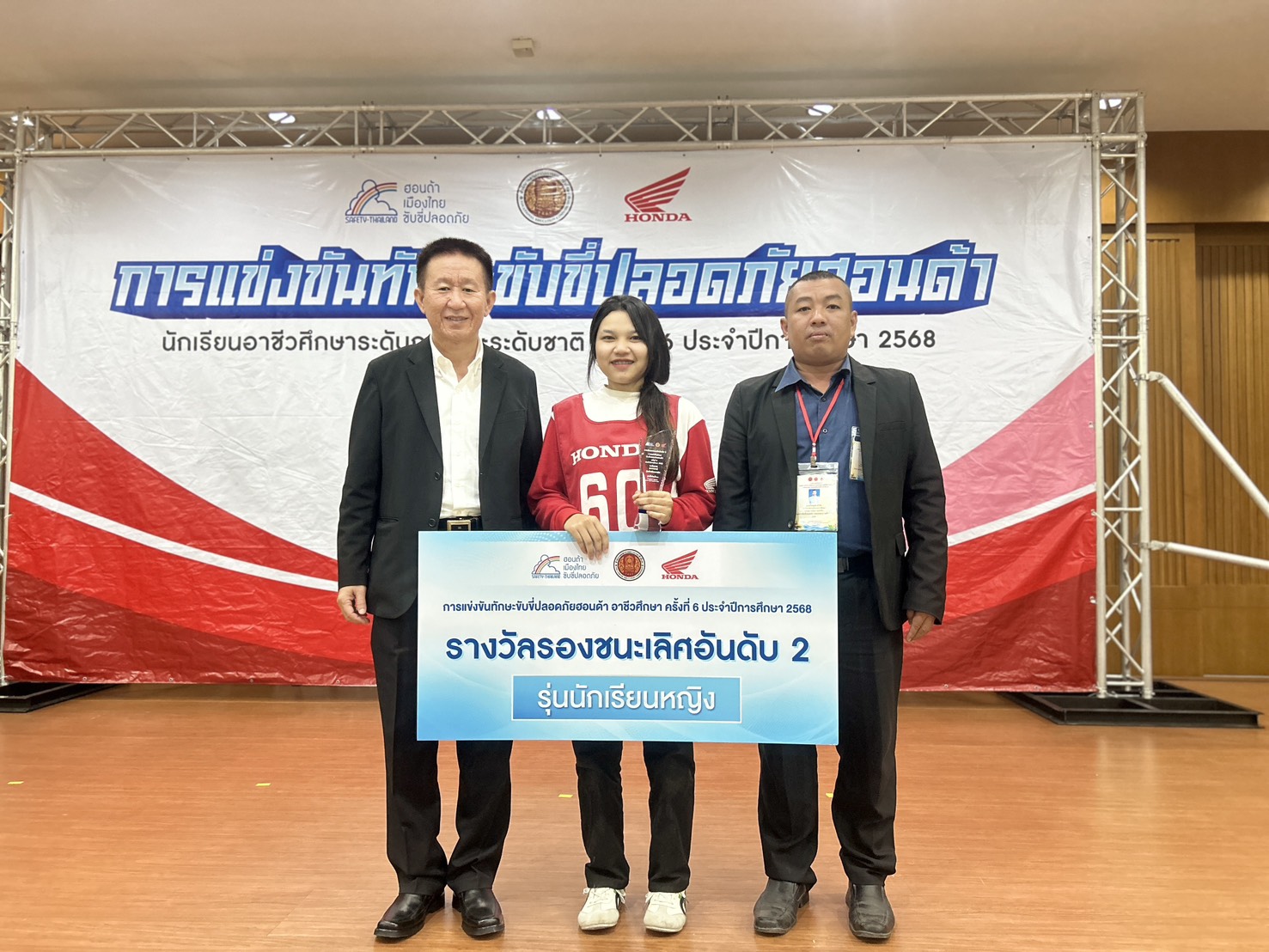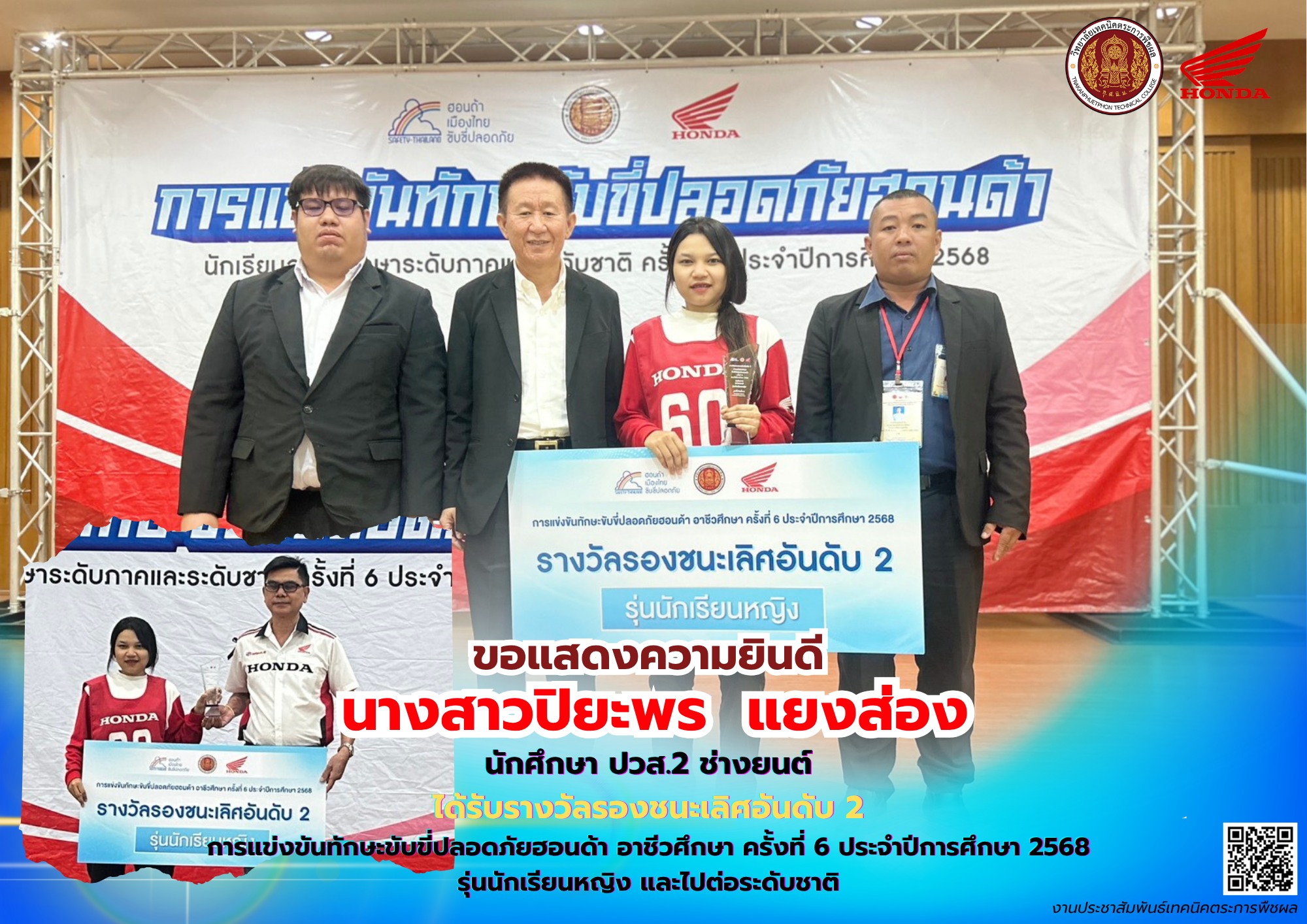 นายทรงพล อุดมพันธ์ นักศึกษา ปวส.1 ช่างยนต์ ได้ลำดับที่ 13 การแข่งขันทักษะขับขี่ปลอดภัยฮอนด้า อาชีวศึกษา ครั้งที่ 6 ประจำปีการศึกษา 2568 รุ่นนักเรียนชายและไปต่อระดับชาติ
