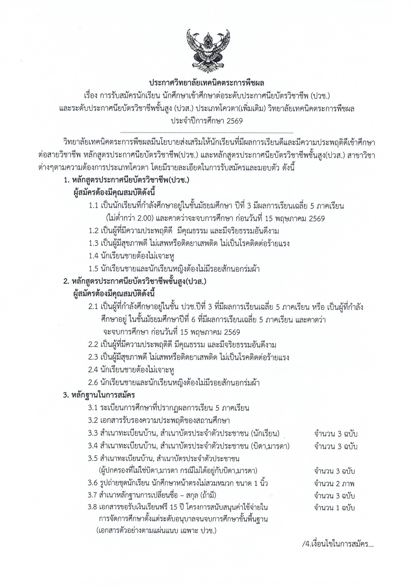 หน้าหลัก/ประกาศ/ประกาศวิทยาลัยเทคนิคตระการพืชผล เรื่อง การรับสมัครนักเรียน นักศึกษาเข้าศึกษาต่อระดับประกาศนียบัตรวิชาชีพ (ปวช.) และระดับประกาศนียบัตรวิชาชีพชั้นสูง (ปวส.) ประเภทโควตา (เพิ่มเติม) วิทยาลัยเทคนิคตระการพืชผล ประจำปีการศึกษา 2569 ประกาศ ประกาศวิทยาลัยเทคนิคตระการพืชผล เรื่อง การรับสมัครนักเรียน นักศึกษาเข้าศึกษาต่อระดับประกาศนียบัตรวิชาชีพ (ปวช.) และระดับประกาศนียบัตรวิชาชีพชั้นสูง (ปวส.) ประเภทโควตา (เพิ่มเติม) วิทยาลัยเทคนิคตระการพืชผล ประจำปีการศึกษา 2569 IDC:งานศูนย์ข้อมูลสารสนเทศ16 ธันวาคม 2025 99 ไม่ถึงนาที Facebook Messenger Messenger Line ส่งอีเมล พิมพ์ IDC:งานศูนย์ข้อมูลสารสนเทศ16 ธันวาคม 2025 99 ไม่ถึงนาที Facebook Messenger Messenger Line ส่งอีเมล พิมพ์ Facebook Messenger Messenger Line ส่งอีเมล พิมพ์