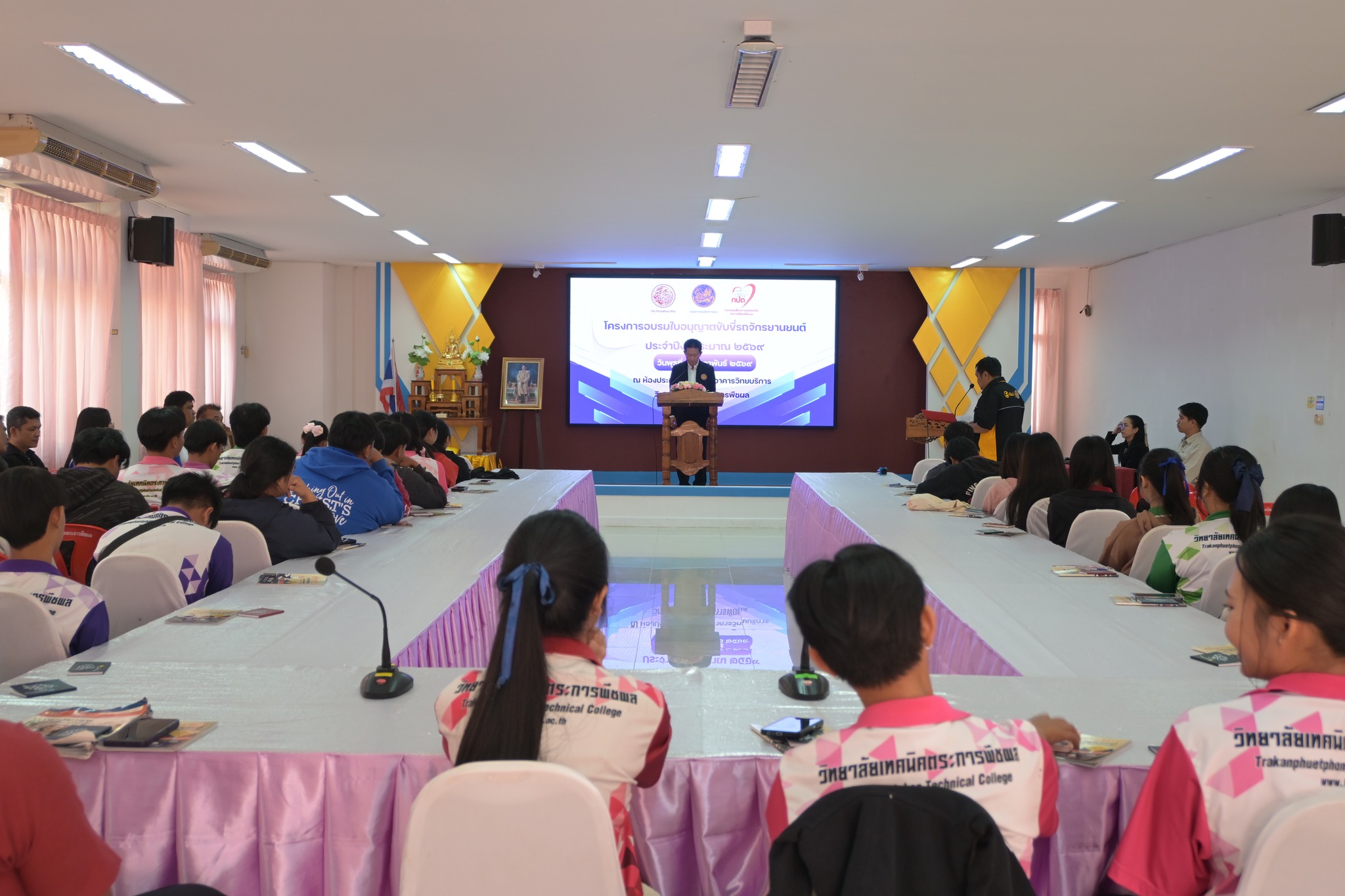 วันพุธที่ 4 กุมภาพันธ์ 2569 วิทยาลัยเทคนิคตระการพืชผล โดย นายมนตรี สุริยพันตรี ผู้อำนวยการวิทยาลัยเทคนิคตระการพืชผล พร้อมด้วยคณะครู และนักเรียนนักศึกษา เข้าร่วมโครงการอบรมใบอนุญาตขับขี่รถจักรยานยนต์ ประจำปีงบประมาณ 2569 ร่วมกับสำนักงานขนส่งจังหวัดอุบลราชธานี ณ วิทยาลัยเทคนิคตระการพืชผล