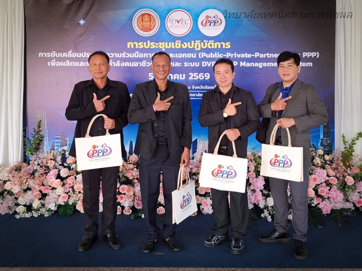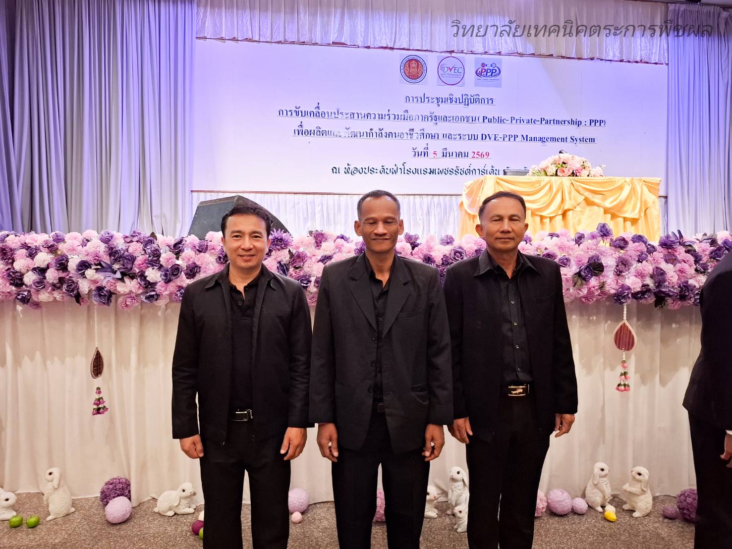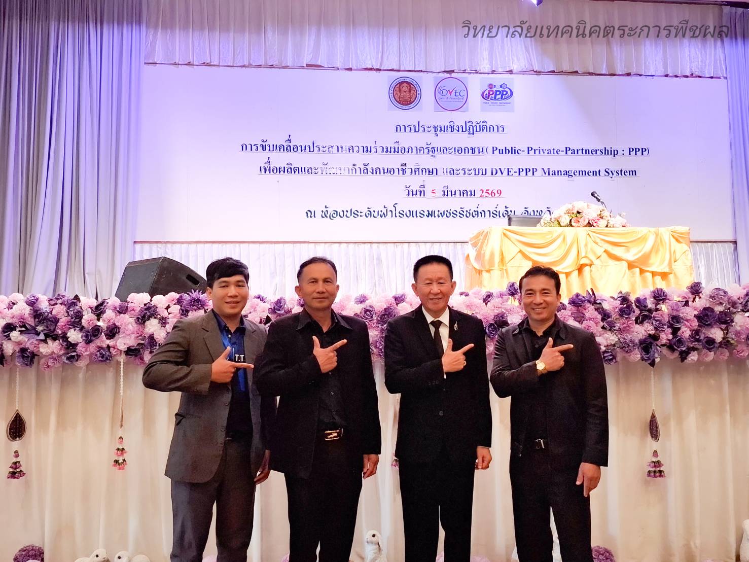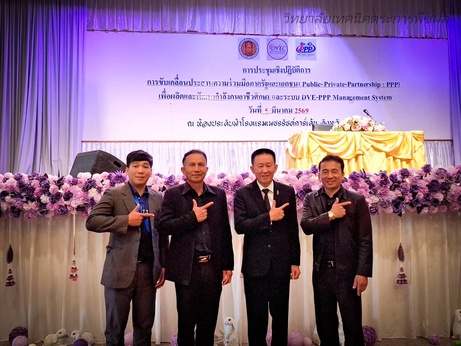 วันพฤหัสบดีที่ 5 มีนาคม 2569 นายมนตรี สุริยพันตรี ผู้อำนวยการวิทยาลัยเทคนิคตระการพืชผล พร้อมด้วยนายโควิน เดชพันธ์ รองผู้อำนวยการ ครูและบุคลากรทางการศึกษา เข้าร่วมประชุมเชิงปฏิบัติการการขับเคลื่อนประสานความร่วมมือภาครัฐและเอกชน PPP เพื่อผลิตพัฒนากำลังคนอาชีวศึกษา และระบบ DVE-PPP ณ ห้องประชุมประดับฟ้า โรงแรมเพชรรัชต์การ์เด้น จังหวัดร้อยอ็ด