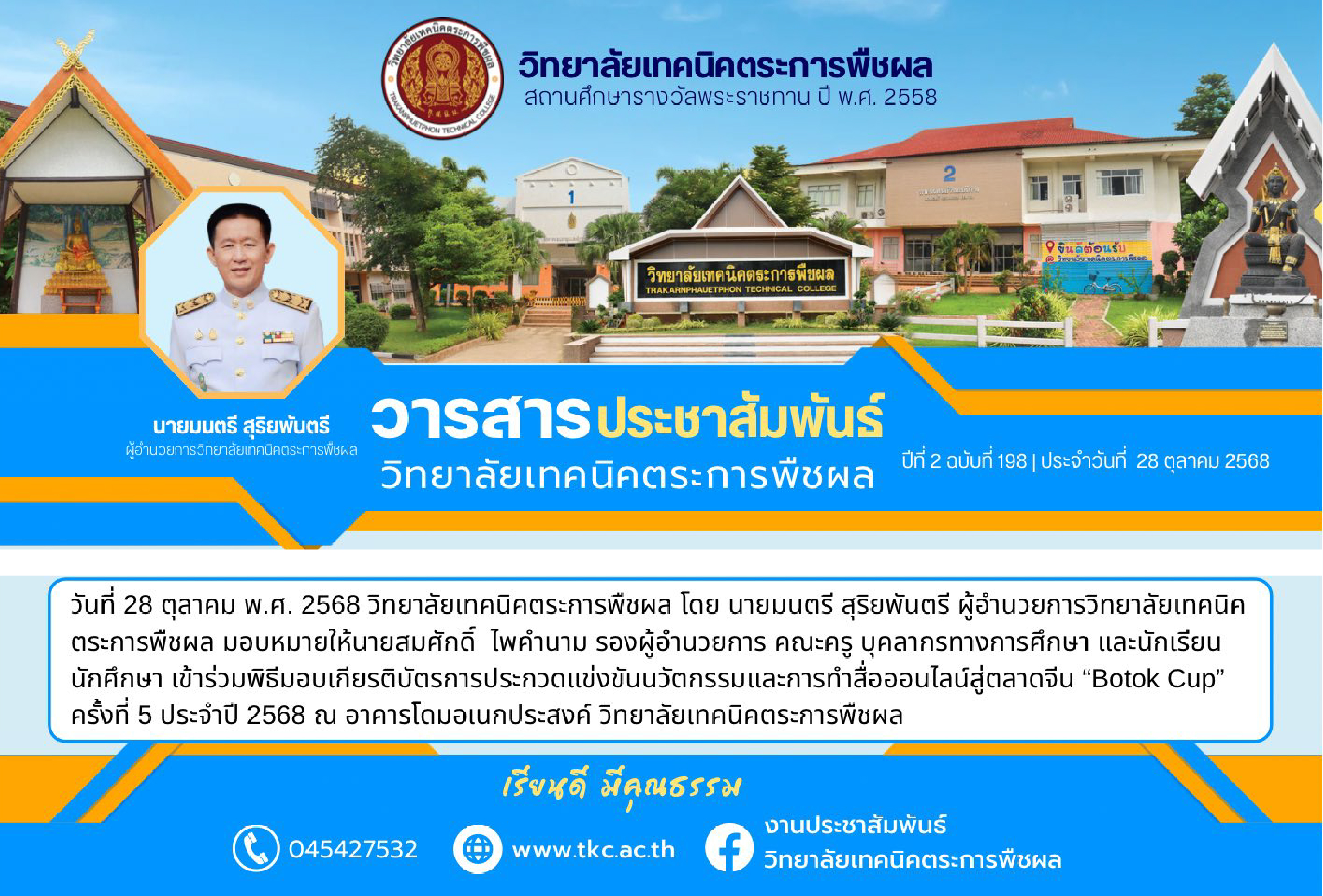 วันพฤหัสบดีที่ 2 มีนาคม 2566 วิทยาลัยเทคนิคตระการพืชผล นำโดย นายแปลก ภีระคำ ผู้อำนวยการวิทยาลัยเทคนิคตระการพืชผล มอบหมายให้นายกรวิทย์ สระประไพ รองผู้อำนวยการฝ่ายพัฒนากิจการนักเรียน นักศึกษา ทำความร่วมมือสถานศึกษาปลอดภัย ปี พ.ศ.2565 กับหัวหน้าหน่วยงานราชการ กำนัน ผู้ใหญ่บ้าน นายกองค์การบริหารส่วนตำบลในท้องที่อำเภอ ณ อำเภอตระการพืชผล